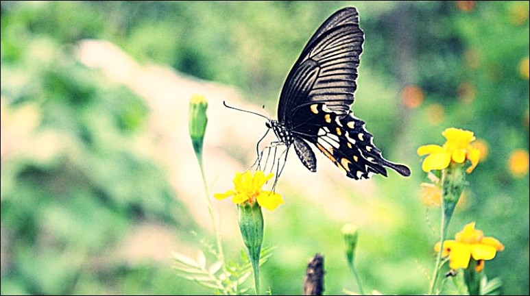 그 소리에 반한 듯 어디선가 나비 한 마리가 날아왔네요.^^