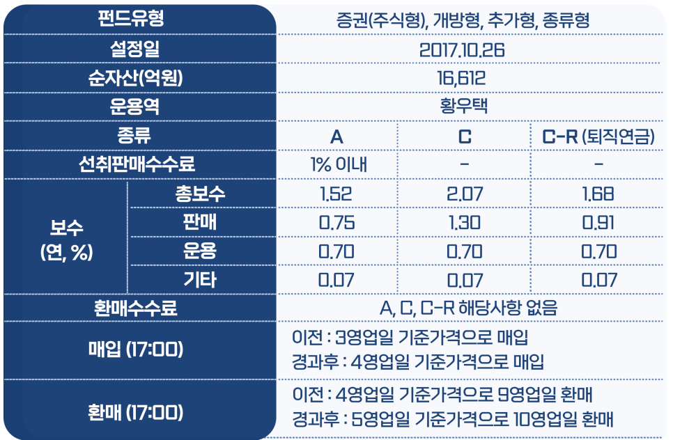 ※ 해외투자분 순자산가치(NAV)의 70% 이상 범위에서 시장상황에 따라 탄력적으로 헤지하여 환율변동 위험 제거 예정