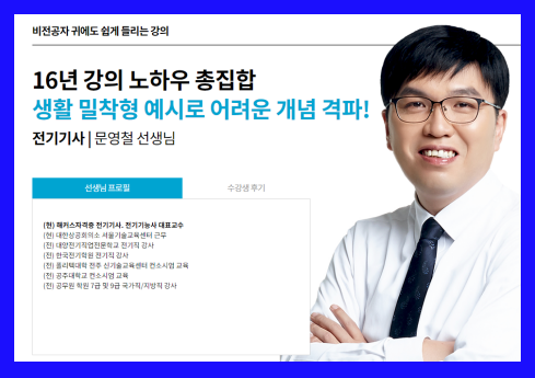 강의도 최고의 교수님 강의로 구성되어 있으며 패스 수강 시 함께 제공된다는 점! 해커스 전기기사 문용철 교수님.