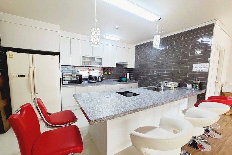 주방도 쾌적하고 조리가 가능해서 간단하게 만들어서 다같이 모여서 식사도 할 수 있어요~ 필요한 주방용품이나 식기도 있으니 걱정마세요