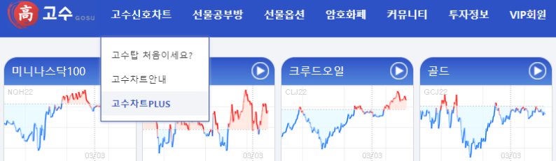 고수신호 차트 플러스는 주요 해외 선물 종목을 실시간으로 시세와 신호를 제공합니다.