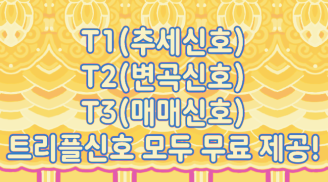 T3 신호는 단기 거래 타이밍을 찾는 신호로 트리플 신호는 T1, T2, T3 신호가 모두 방향이 같을 때 표시되는 신호입니다.
