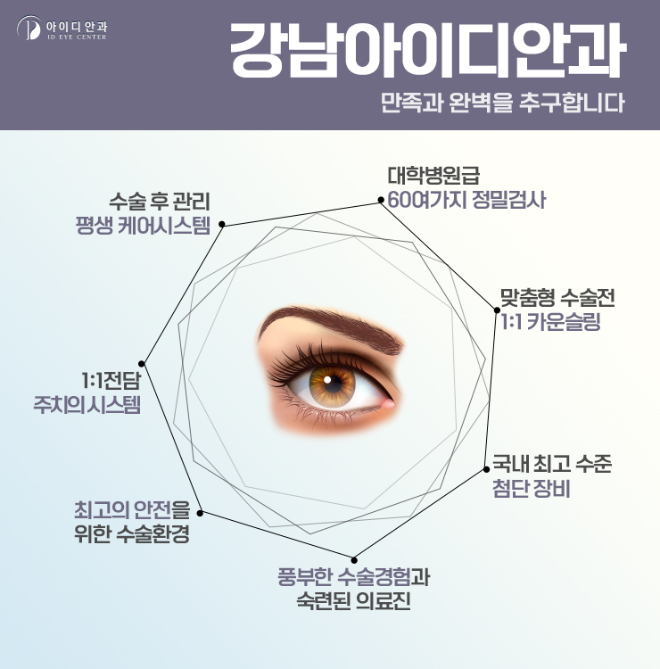 저희 병원에서 진행 중인 아이디의 프리미엄 백내장 수술의 경우 백내장을 제거할 뿐만 아니라 근시와 난시와 같은 굴절 이상도 함께 해결해 주어 보다 선명한 시력을 가질 수 있도록 도와줍니다.