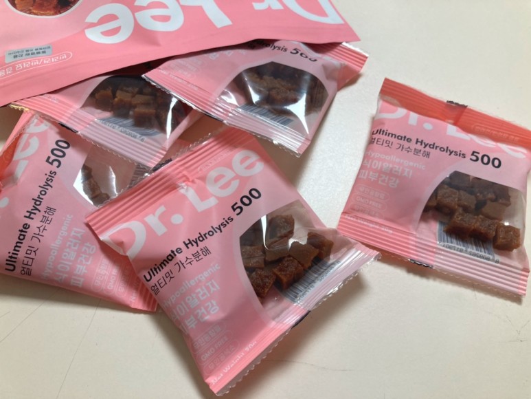 이런 쫄깃쫄깃한 식감의 간식은 인간인 내가 맡아도 냄새가 심하고, 긴 제품이 있어 매번 실패하였다. 닥터 리 새우트리도 안 먹으면 어쩌나 걱정했는데 잘 먹어서 다행이야. 무엇보다 냄새가 심하지 않아서 다행이야. 닥터리 에비트리의 영양 간식은 작은 큐브 모양으로 먹는 재미와 맛까지 있어 반려동물에게 줄 때 편리했다.