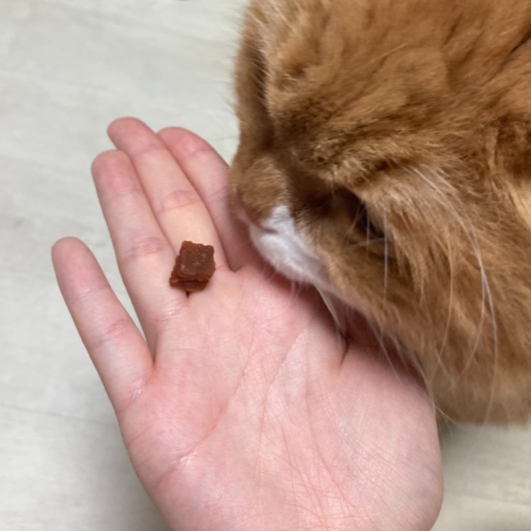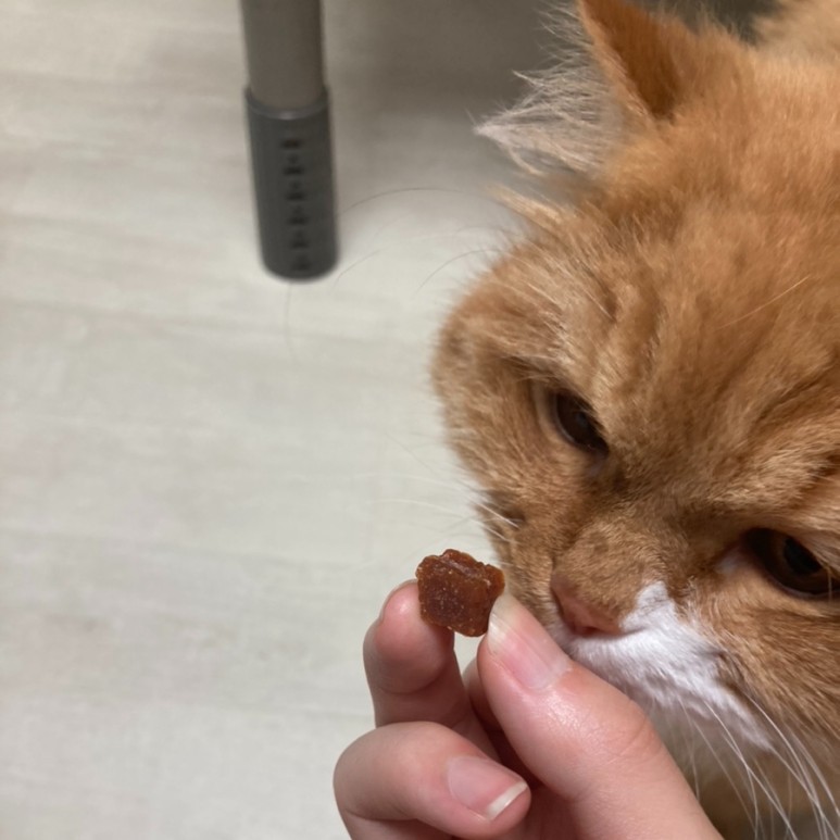 작은 큐브 모양과 부드러운 식감으로, 높은 기호성을 가진 간식이다. 작은 1봉지에 20개 정도 들어 있다. 우리 집 고양이 기준으로 하루에 한두 개 권장량이면 꽤 좋은 양인 것 같아.