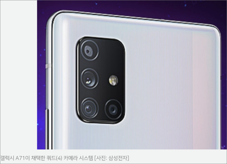 스마트폰에는 카메라가 평균 3~4개 들어가면, ▼ 카메라 4개가 들어가는 삼성 갤럭시 A 퀀텀