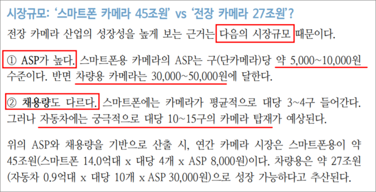 자동차를 0.9억 대라고 가정했을 때, 0.9억 대 x 1대당 10개 x ASP == ᅵᄌᆼ 。 시장. (1대당 15개 가정 시, ᅵᅡᄅᄅᄅᄅ 시장으로서 계산된다)
