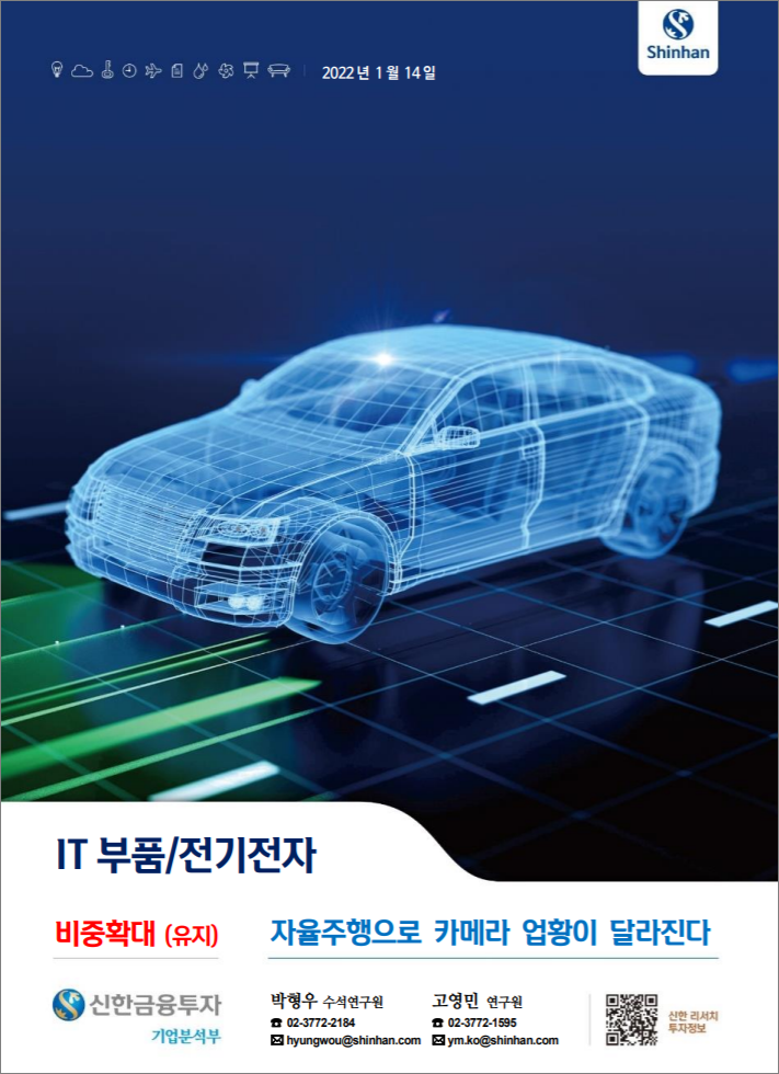 전장 카메라 대장주에서는 이런 카메라 산업의 대장주란 무엇일까.신한금융투자에서는 세 가지 관점에서 각각 대장주를 제시했다.