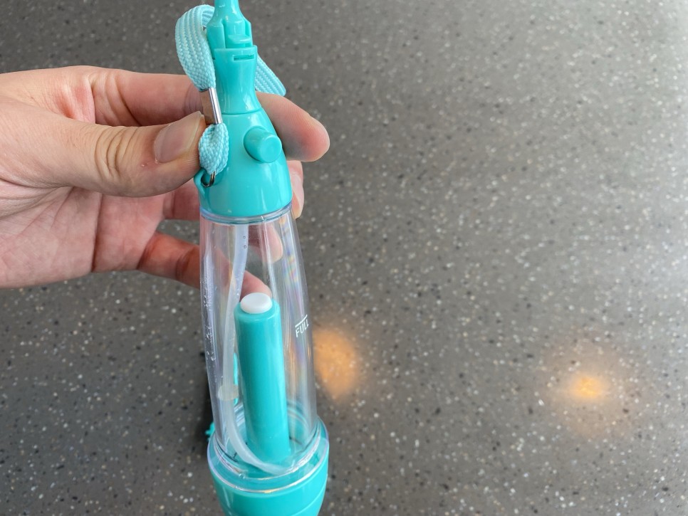 긴 팁을 이용해 입자의 가까운 곳을 조준한 후 버튼을 누르면