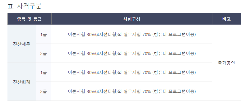 셋째, 전산회계 1급 한국세무사회 국가공인자격시험(kacpta.or.kr)