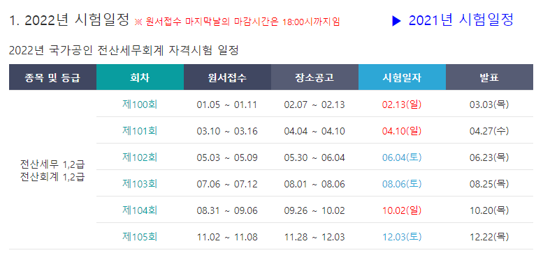 저는 순서대로 1. SMAT(2/12) 2. CS Leaders 관리사(3/13) 3. 전산회계 1급(4/10) 시험을 볼 계획입니다.