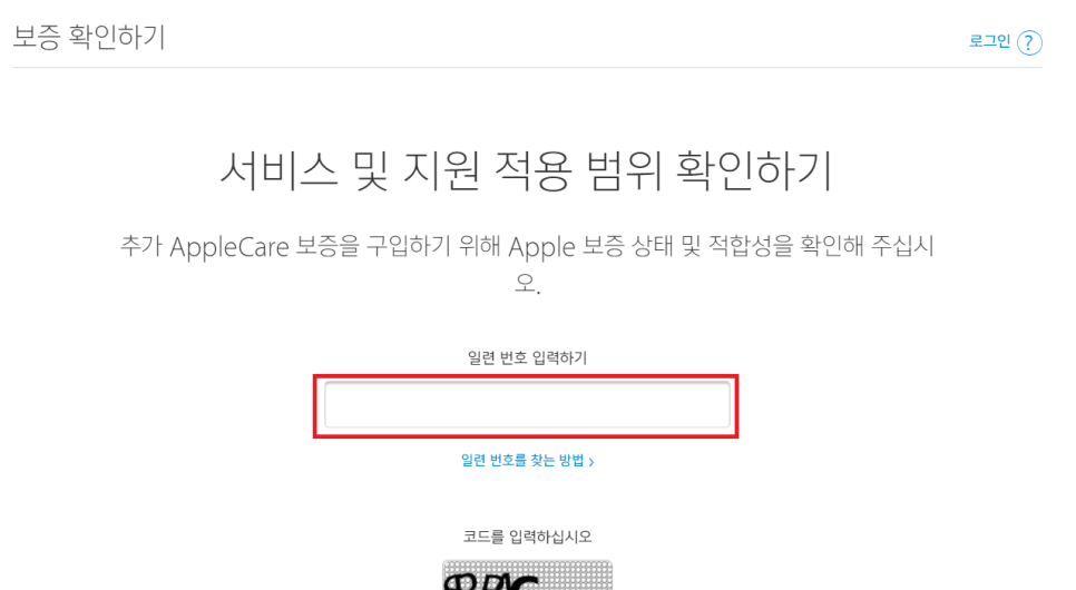 보증 확인에 로그인하는 이유 서비스와 지원 적용 범위 확인 추가, Apple Care 보증을 구입하기 위해 Apple 보증 상태와 적합성을 확인하십시오. 일련 번호 입력의 일련 번호를 찾는 방법(새 창에서 열기) 코드를 입력해 주세요. 코드 새로고침 시각장애, 계속 checkcoverage.apple.com를 통해 위 링크를 방문합니다.