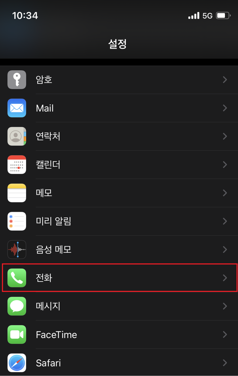 설정->전화로 들어갑니다.