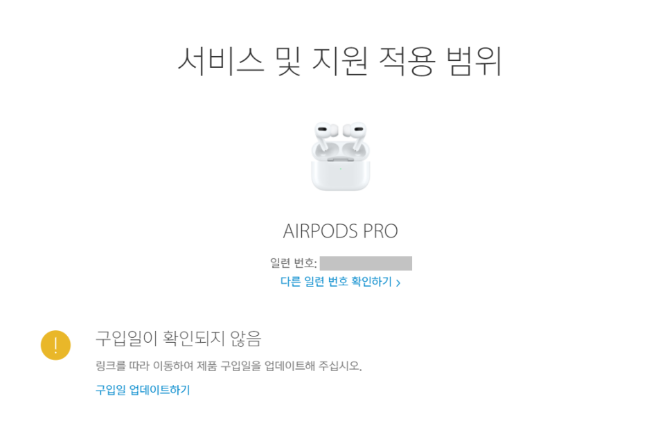 저는 제조연월 문제를 전혀 모르고 구입했는데, 2020년 10월 제품은 리콜대상이라는 얘기가 있었습니다. 일단 제 에어팟 프로는 문제가 없다는 것을 알고 바로 정품 등록을 진행했습니다.