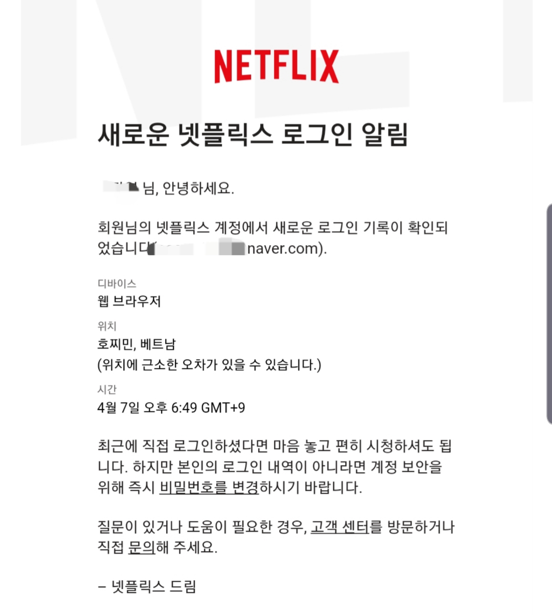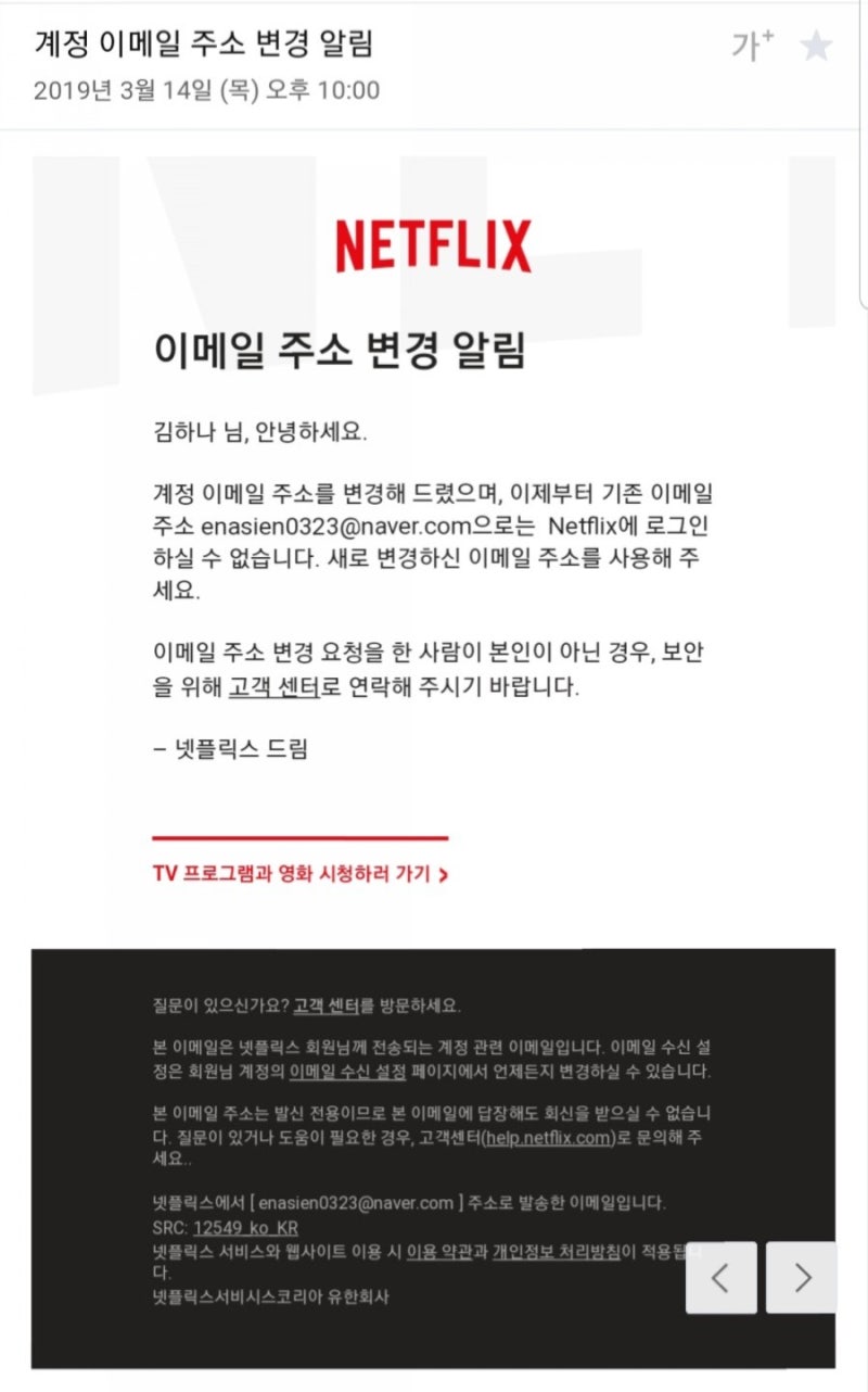 이번 일을 겪은 뒤에야 알았지만 넷플릭스는 특이하게 로그인만 하면 다른 이메일로 인증하고 이메일 아이디를 바꿔 사용할 수 있다는 점이 단점인 것 같다.