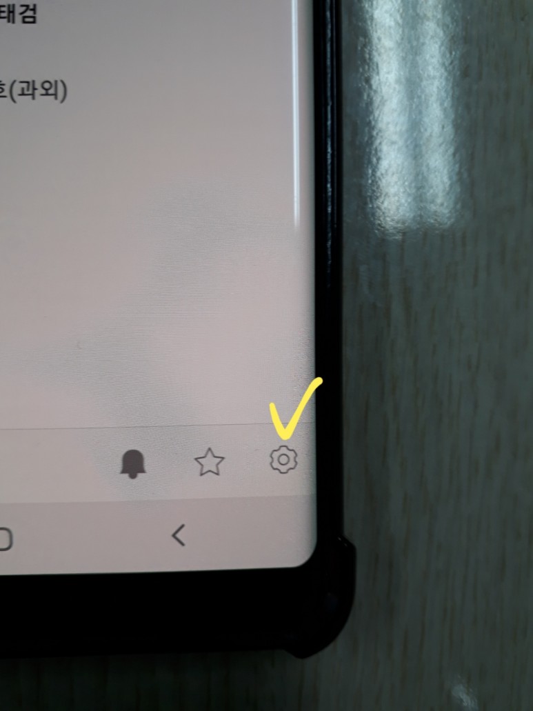 바꾸고 싶은 채팅방에 들어갑니다.그리고 상단에 있는 3개의 행을 클릭합니다. 그리고 아래에 있는 톱니바퀴를 클릭!