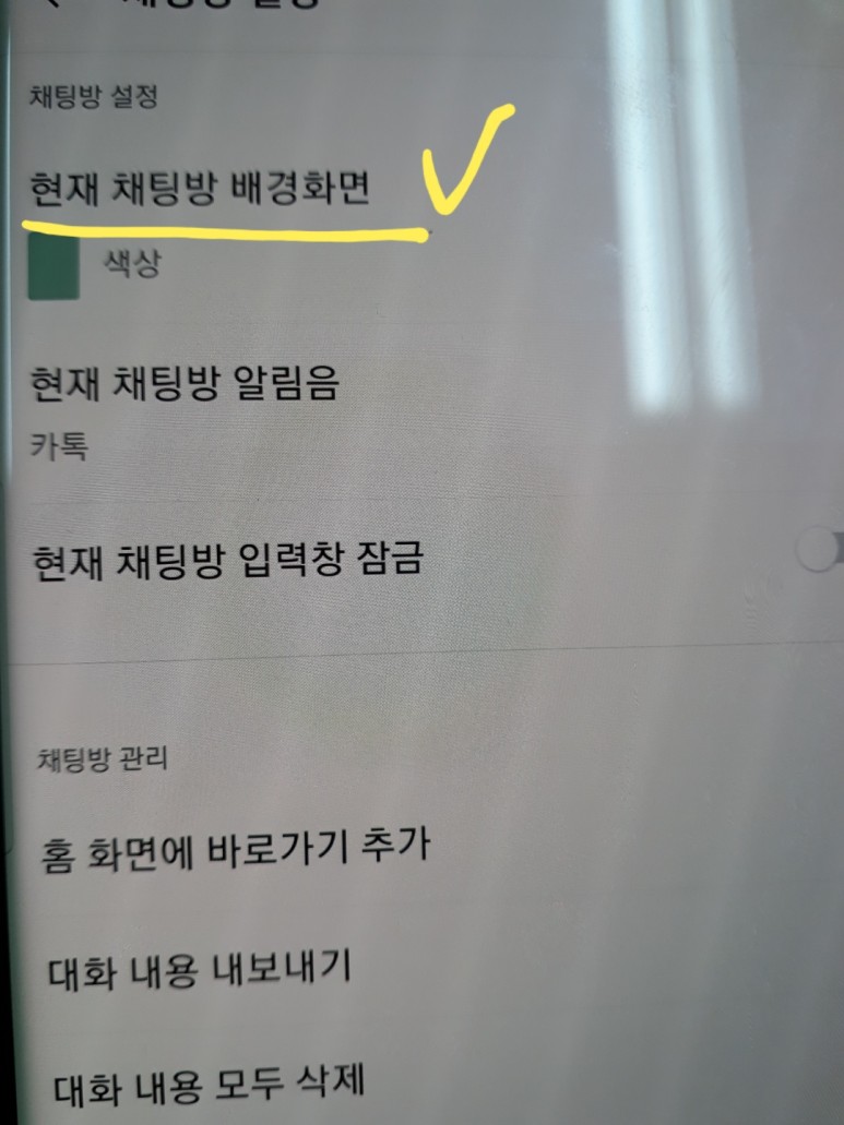 마찬가지로 현재 대화방의 배경화면을 클릭하여 카카오톡 대화방을 설정하십시오.