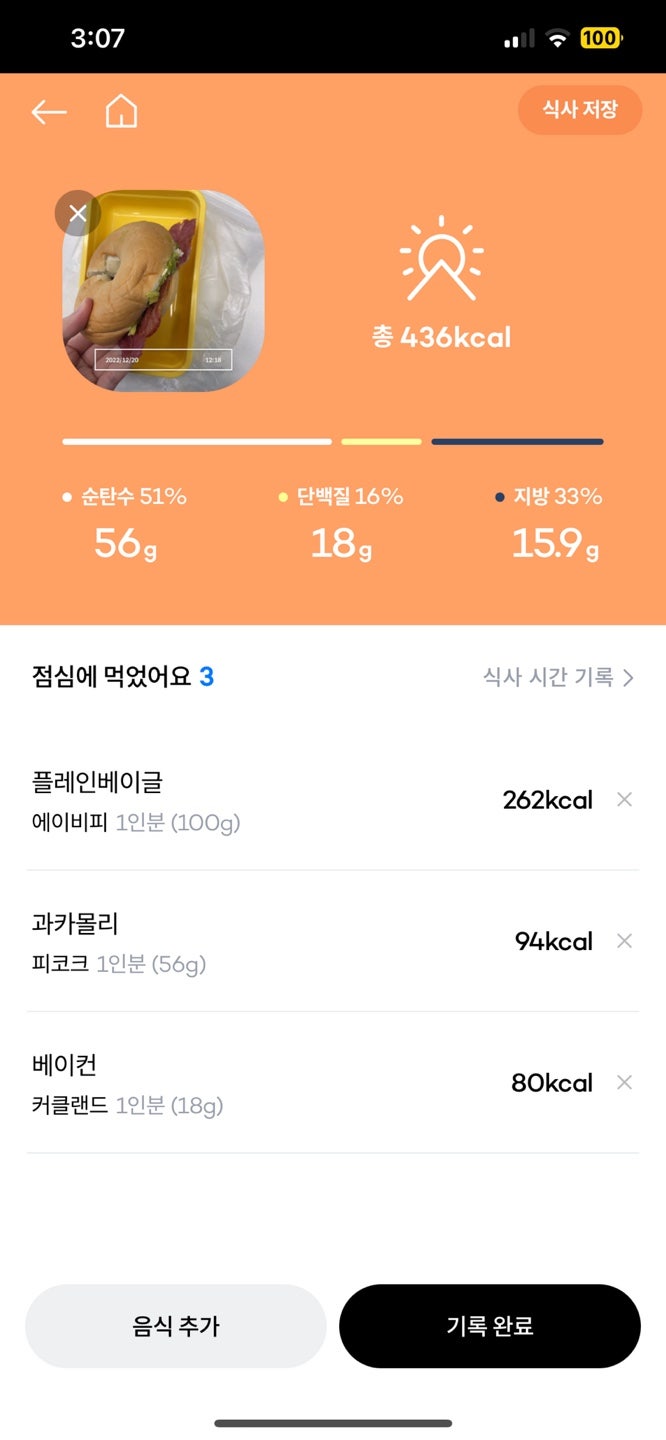 음식추가 버튼을 누르면 시중에 판매되는 대부분의 음식들이 검색결과로 표시되거나 아니면 새로 등록할 수도 있고, 무엇을 먹었는지 사진을 찍어서 추가 기록할 수도 있습니다 모아 볼 수도 있습니다.