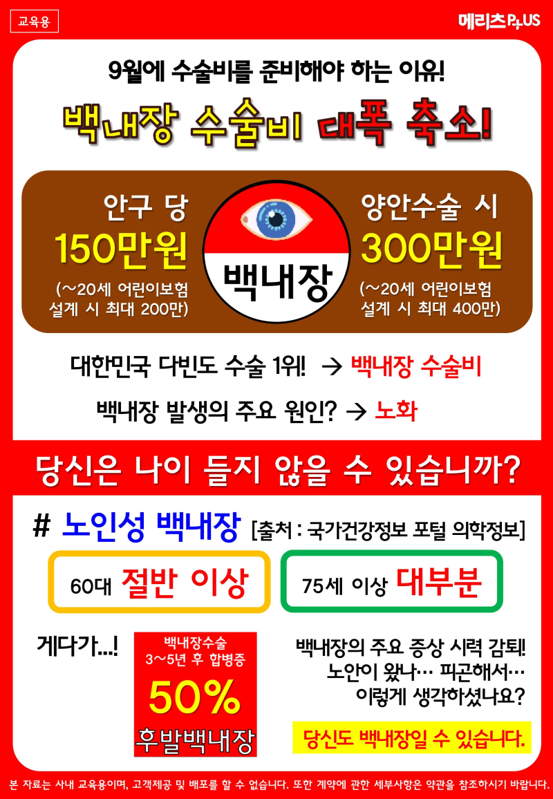3세대/4세대 실손보험을 가지고 계신 분이라면 실손보험에서 비급여에 대한 자기부담금이 20~30% 있기 때문에 앞으로 백내장처럼 확률이 높은 수술에 대해 준비할 수 있는 수술비 보험도 경제적인 여건을 고려하여 준비해 주시면 감사하겠습니다.