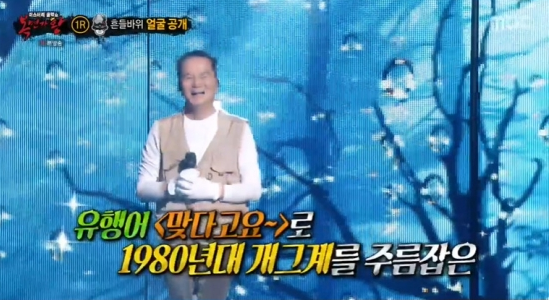 이날 1라운드 첫 번째 대결에서 ‘모두 내 노래를 듣고 흔들려서 자꾸 흔드는 의자’와 ‘오늘 내가 복면가왕을 흔들어 놓을게요’ ‘흔들바위’는 이선희의 ‘나 언제나 너를’을 열창했습니다