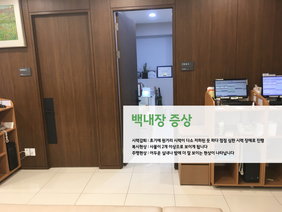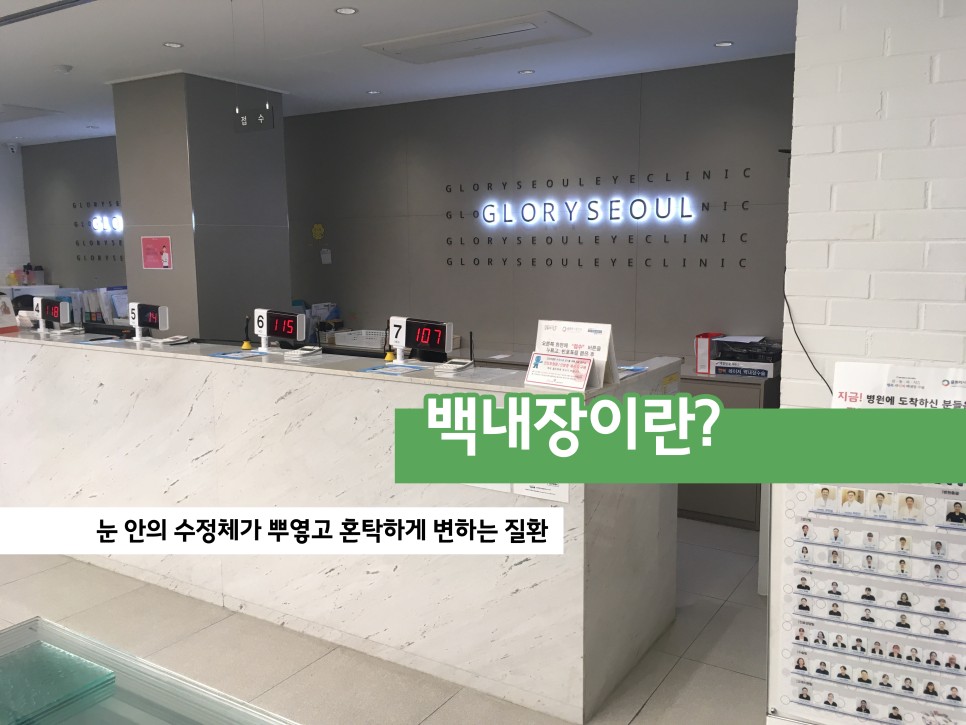 눈의 가장 앞부분이 수정체라고 하는데, 여기에 탁해지는 것을 백내장이라고 합니다. 또 그대로 두면 자연스럽게 개선되는 질환이 아니며, 노안처럼 안경을 쓴다고 탁함이 사라지는 것도 아니기 때문에 빠른 대처가 더 나은 삶을 설정할 수 있습니다. 무엇보다도 녹내장, 황반변성과 함께 3대 실명질환으로 꼽힐 정도로 위험한 질환이에요.