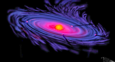 행성이 형성되는 초기 원시 행성 원반의 상상도.©NASA 행성을 형성하는 원반에 관한 최근 관찰에 따르면 원반의 중앙을 지나는 면(midplanes)이 상대적으로 낮은 수준의 난류(turbulence)를 가질 수 있는 것으로 나타났다.
