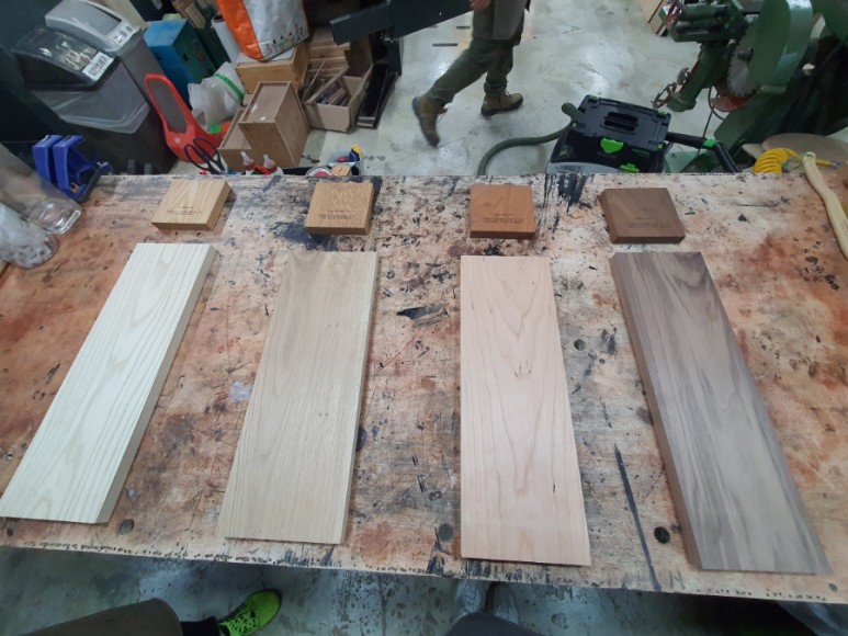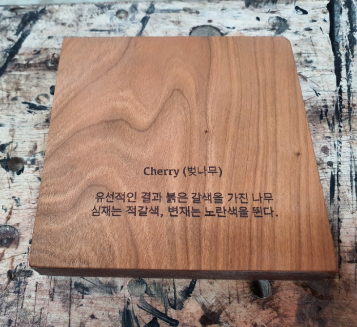 - “4개의 원목 중 하나만 선택하세요” 호두나무와 앵두나무는 나뭇결이 곡선인 느낌 물푸레나무, 흰바나나무는 직선적인 느낌을 줍니다.