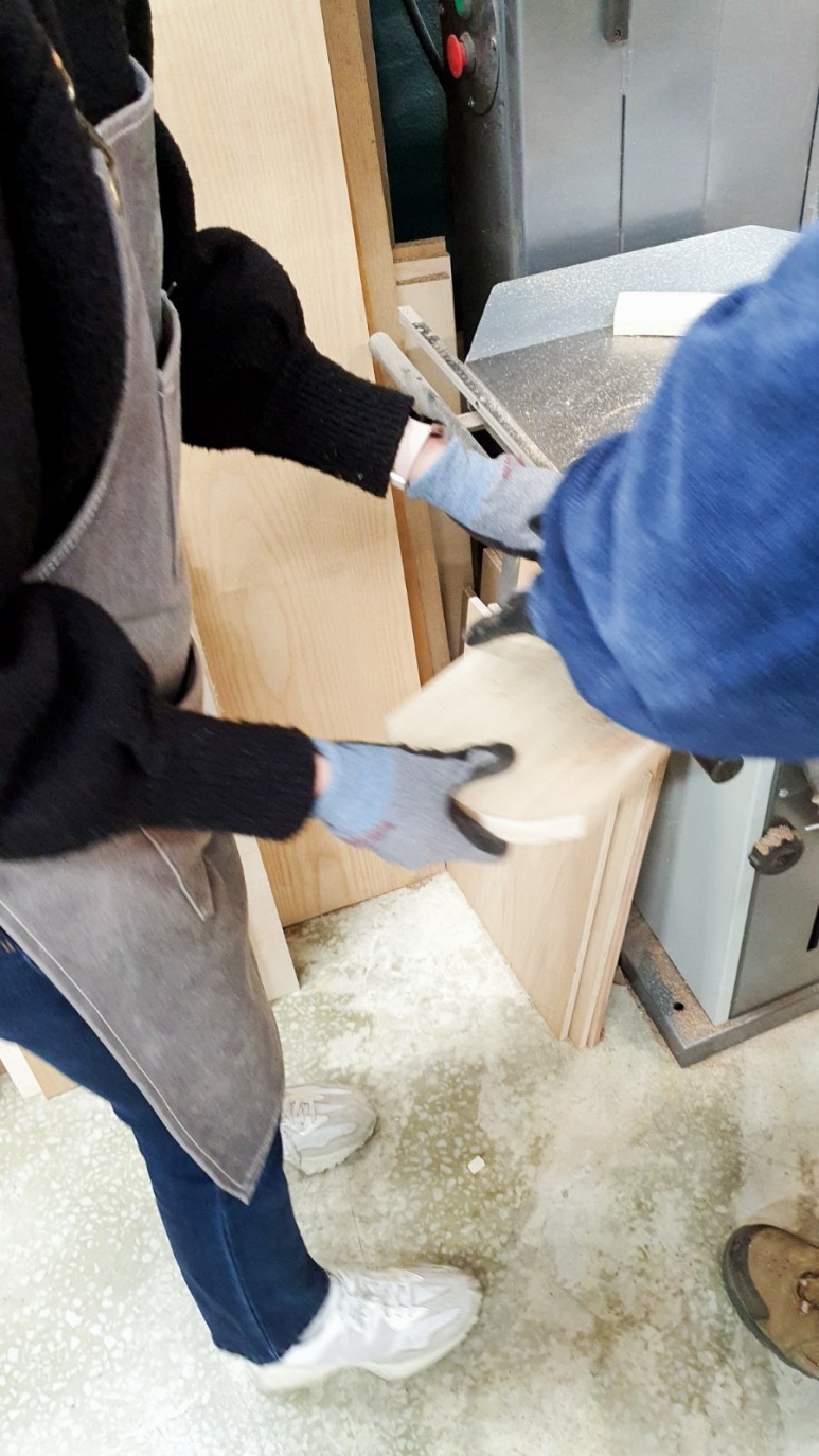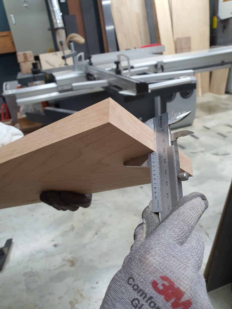 2. 원목의 두께를 정해 다듬는다.두께는 19mm로 정하세요! 19mm로 다듬기 위해 하는 일은?당연히 자로 나무의 두께를 재야겠지요? (웃음)