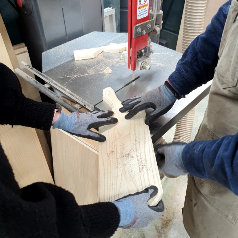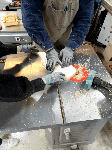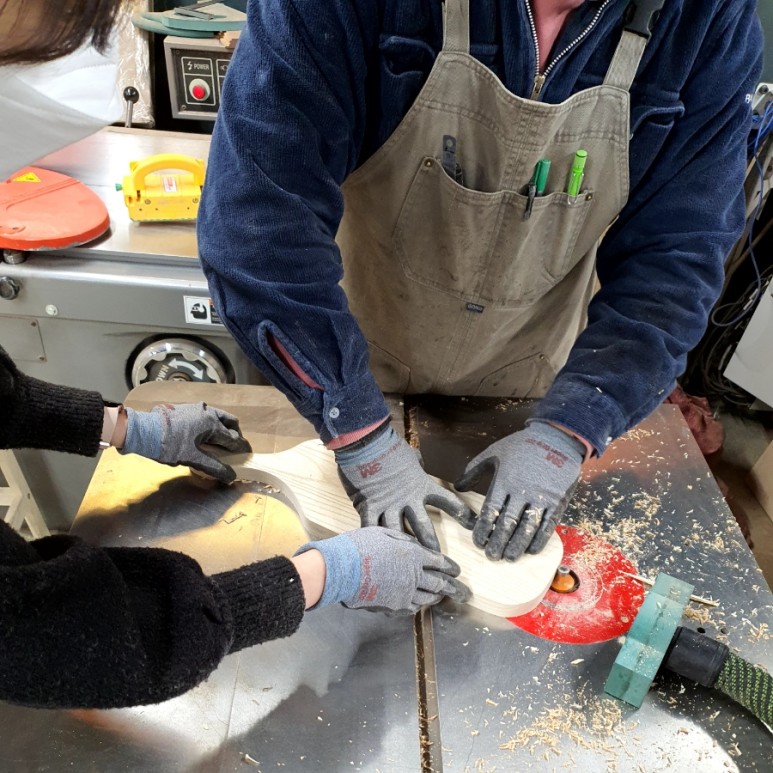4. 직선 부분 & 큰 곡선 부분을 기계로 잘라냅니다.선생님께서 적극적으로 도와주셔서 편하고 안전하게 참여하실 수 있었어요 🙂