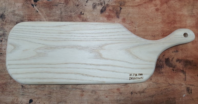 전기다리미로 도마에 글씨를 쓰고 오일을 바르는 다리미가 있어서 글씨를 쓸 수 있어요!저는 날짜 + delicious 라고 썼습니다.뭘 쓸지 몰랐어요;;