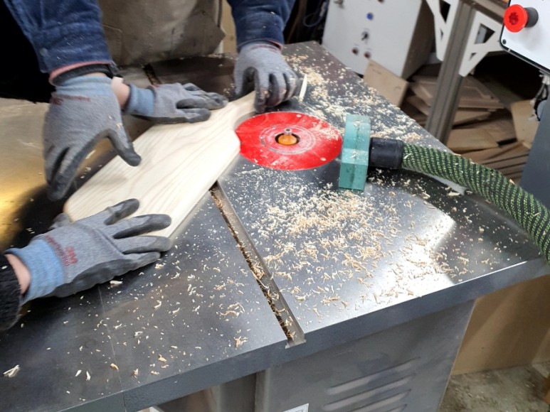 아래의 기계에 원하는 두께를 입력하고 나무 도마를 누르면 원하는 두께로 나눌 수 있습니다:)