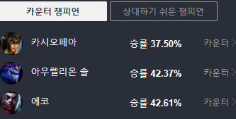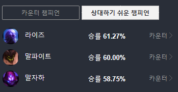 카운터 및 상대하기 쉬운 챔프입니다.