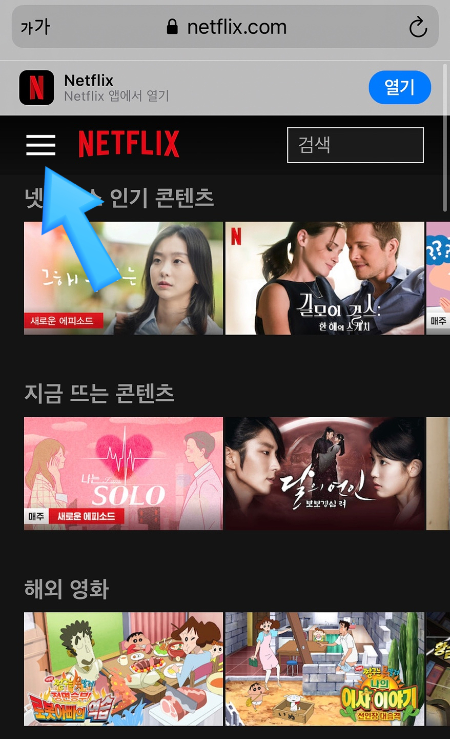 앱이 아닌 사파리 웹사이트에 들어가서 왼쪽 상단 메뉴를 클릭하고 ‘계정’을 다시 클릭합니다!