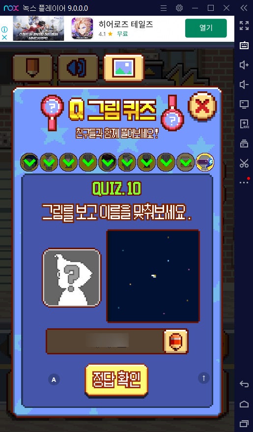 그림 퀴즈의 정답은 비즈니스맨, 펭귄, 드라큘라, 공동묘지, 신선, 공룡, 억만장자, 정글, 복어, 우주인으로 마찬가지로 차례로 정답을 입력하면 각종 코스튬 아이템을 보상으로 받을 수 있다.