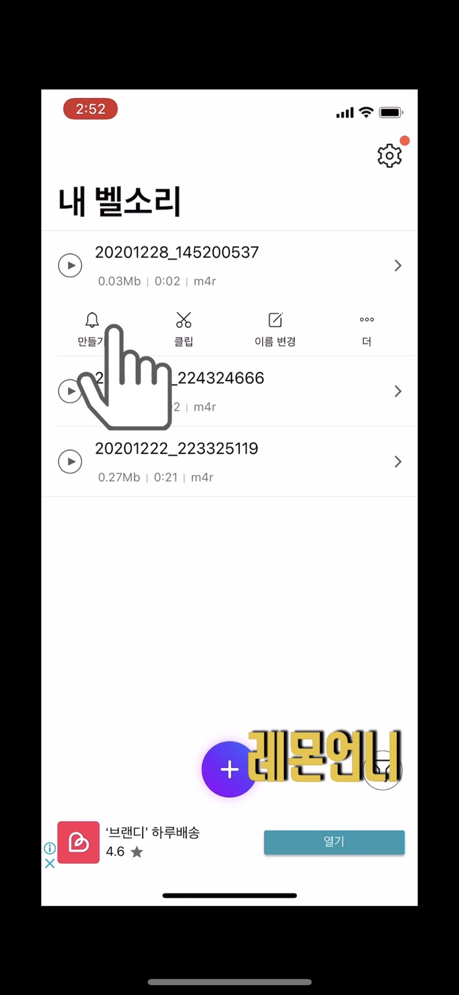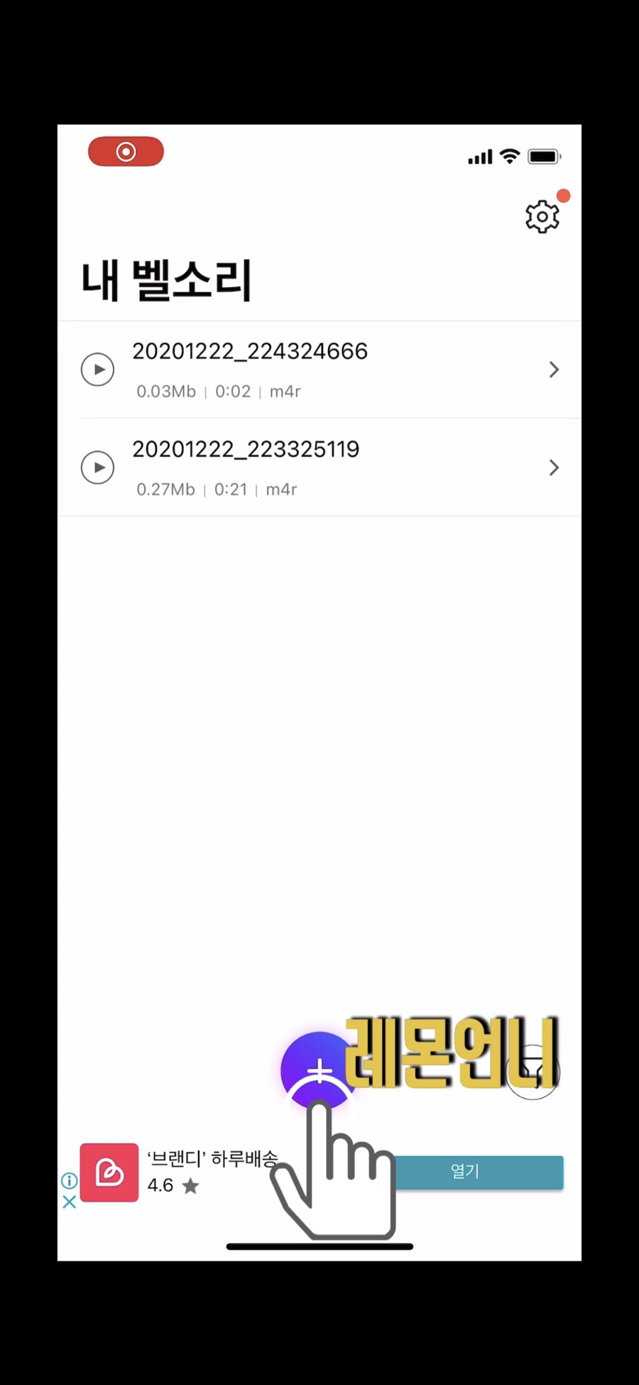 벨소리 제작 앱을 클릭하시고 하단의 + 표시를 클릭해주세요.