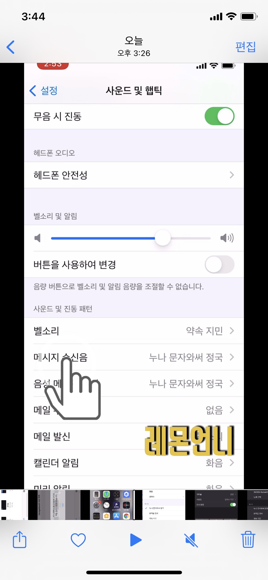 이렇게 아이폰에 음원 파일을 저장할 수 있고, 지민의 모닝콜도 같은 방법으로 저장합니다.이제 설정 들어갑니다설정> 사운드 햅틱