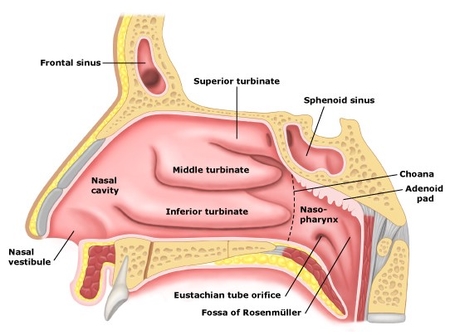 코의 구조 대략 1~3일간의 잠복기를 거쳐 전구기 증상이 나타납니다.바이러스 침범 부위에는 국소적인 건조감, 작열감 또는 가려움증이 느껴지며 전신적으로는 불쾌감, 미열, 오한, 근육통, 두통 등이 유발됩니다.카타르기가 시작되면 전신 증상이 악화되고 다량의 맑은 콧물, 코막힘, 후각 소실이 나타납니다.