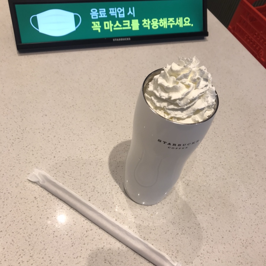 제가 주문한 스타벅스 스프링 시즌 새로운 음료 메뉴 파인 코코그린입니다 갓 블랜디드입니다커스텀은 휘핑크림만 추가했습니다.다른 건 기본 레시피 그대로 적용할게요텀블러 들면 할인ᅡ タンブラー タンブラー タンブラー 혹은 별 1개 추가 되는데… 저는 별을 추가 적립했어요.사이즈는 벤티브이였습니다.시즌 한정 음료 플랜트 요구르트 음료 종류입니다.코코넛과 파인애플을 사용해서 만든 요구르트 블렌딩입니다.요금은 365kcal입니다.