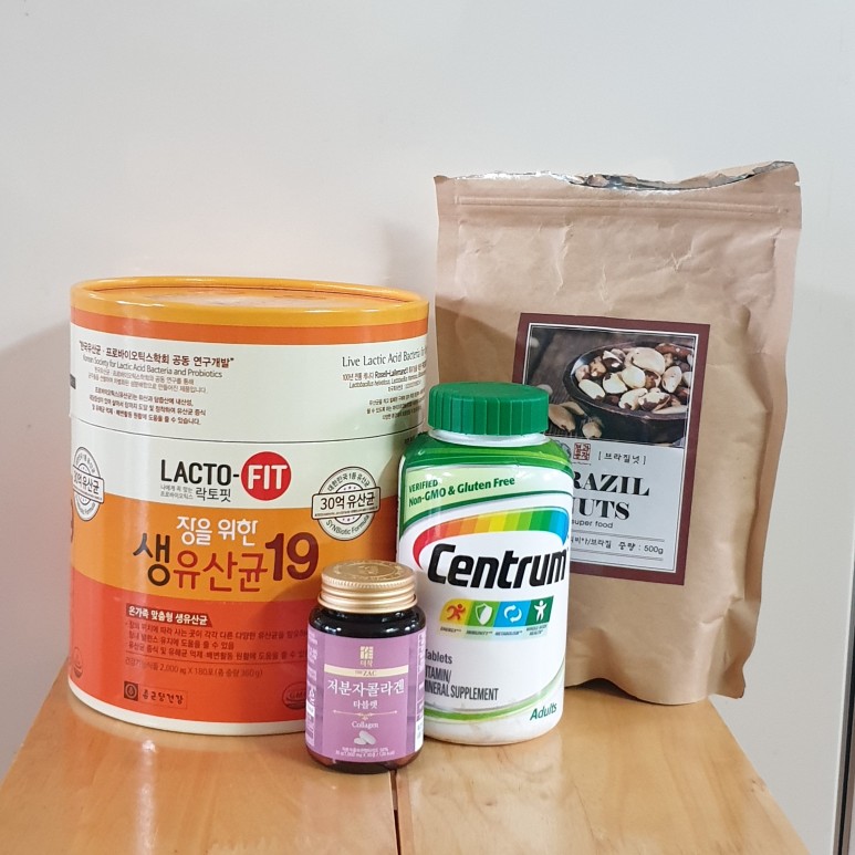 평소 먹던 유산균, 콜라겐, 세인트롬, 브라질넛