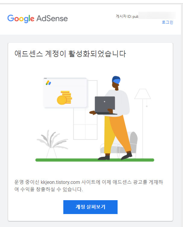여러 차례 어드밴스 광고 통과를 의미한다.몇 번이고 떨어진 후 그만.1월 30일자로 어드센스 광고 게시가 가능하다는 메일이 왔습니다.어드센스 가입 요청은 작년 9월부터였으므로, 약 4개월 정도 지나서 승인이 났네요.