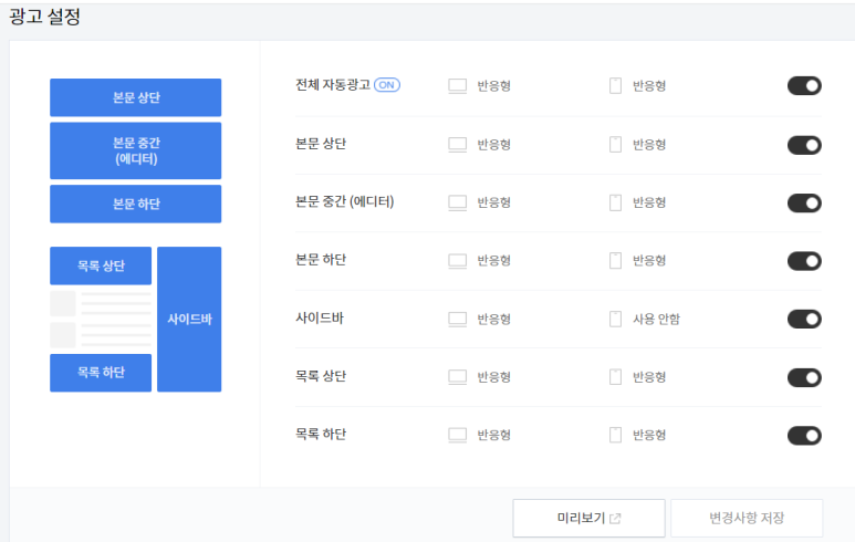 티스토리의 광고 수익은 특히 방해하는 것은 중요하다며 모든 부분에 광고 설정하는 것! (웃음)