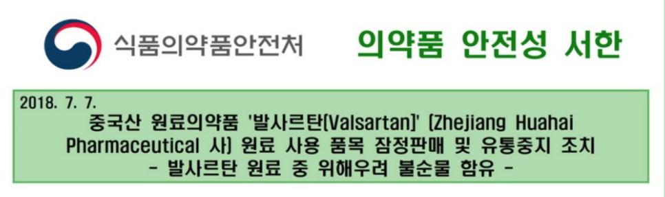 특히 2018년에는 혈압약에 발암물질이 포함되어 있는 것으로 밝혀져 고혈압 환자를 불안하게 한 사건이 있었습니다.당시 혈압치료제로 사용되는 원료의약품 중 중국산 ‘발살탄(Valsartan)’에서 불순물로 ‘N-니트로소디메틸아민(NDMA)’이 확인돼 제품 회수와 잠정 판매 중지 및 제조·수입 중단 조치를 내렸습니다.