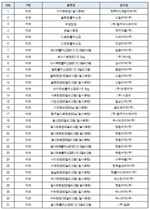발사르탄이 함유된 의약품의 경우 의사의 처방에 따라 약국에서 조제 후 복용할 수 있는 의약품 안전사용서비스(DUR) 체계에 처방금지 경고문이 등록되어 있어 조제 전에 알 수 있다고 하지만 자신이 복용하고 있는 약이나 먹는 약을 체크해 보는 것이 좋습니다.