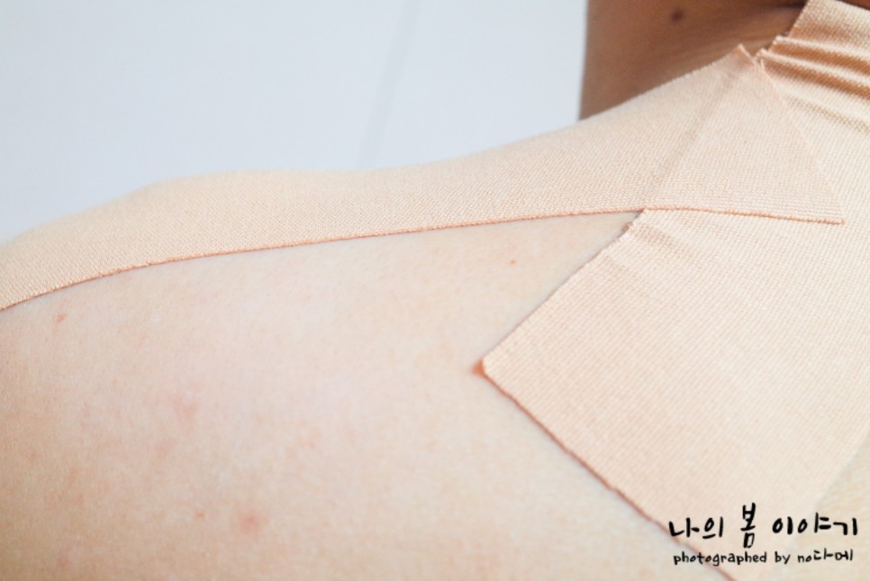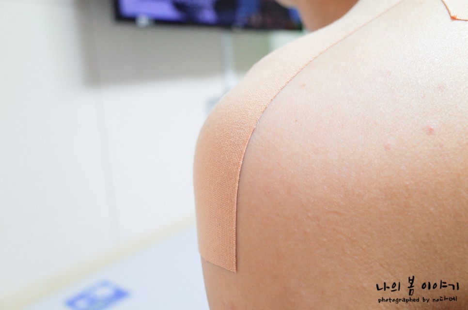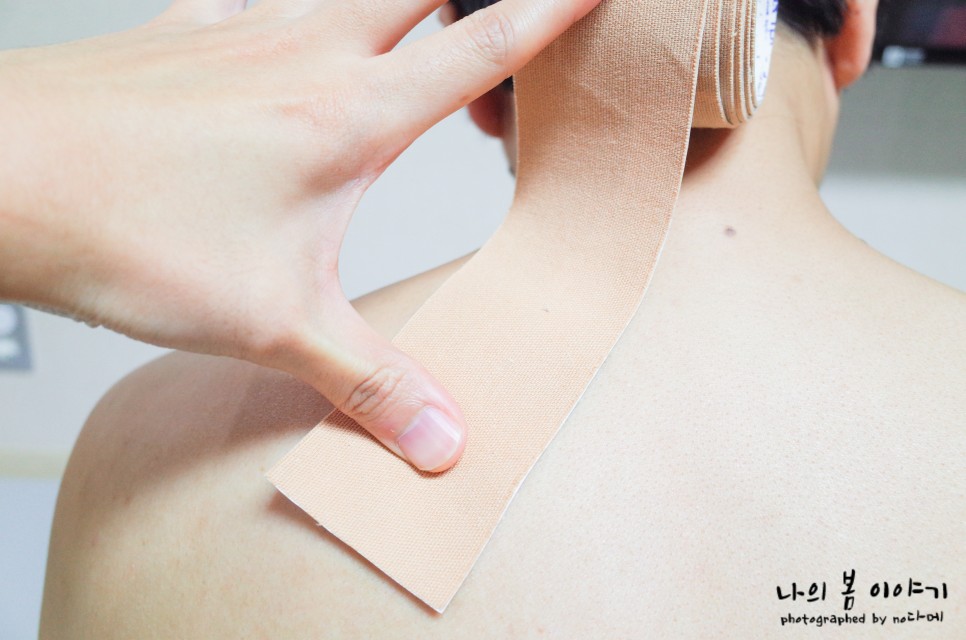견갑거근과 승모근에 근육 테이핑을 해줬어요