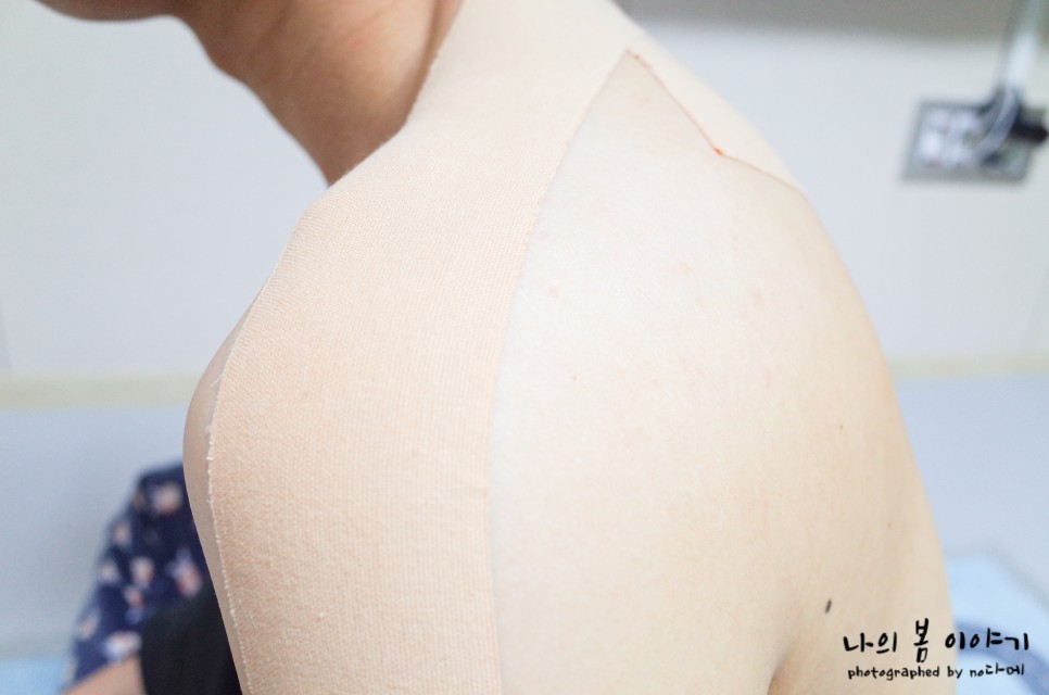 일단 남표니까 망치로 두드린 후 어깨 통증을 호소하는 김에 거기에 맞춰 테이핑했으니 참고해 주세요.
