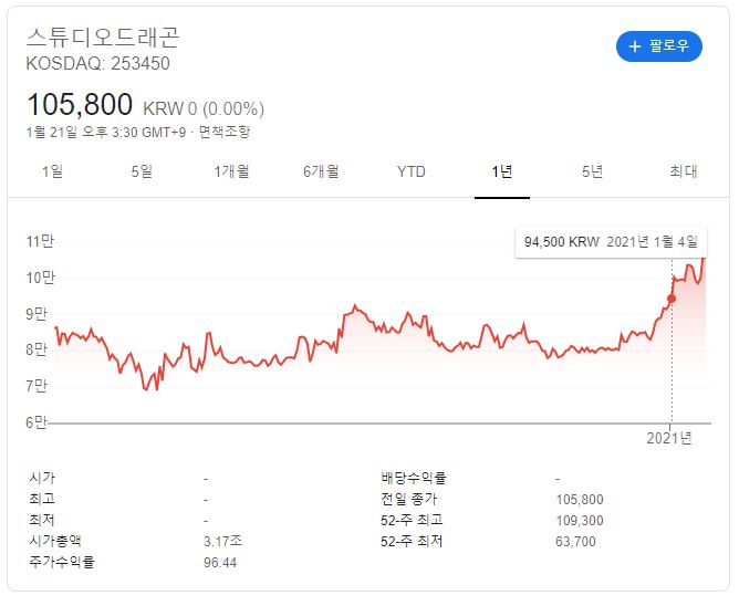 스튜디오 드래곤 주가 1년 출전 : 구글 스튜디오 드래곤 1년 주가 차트입니다~