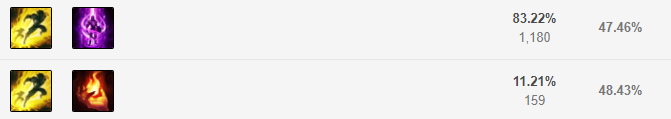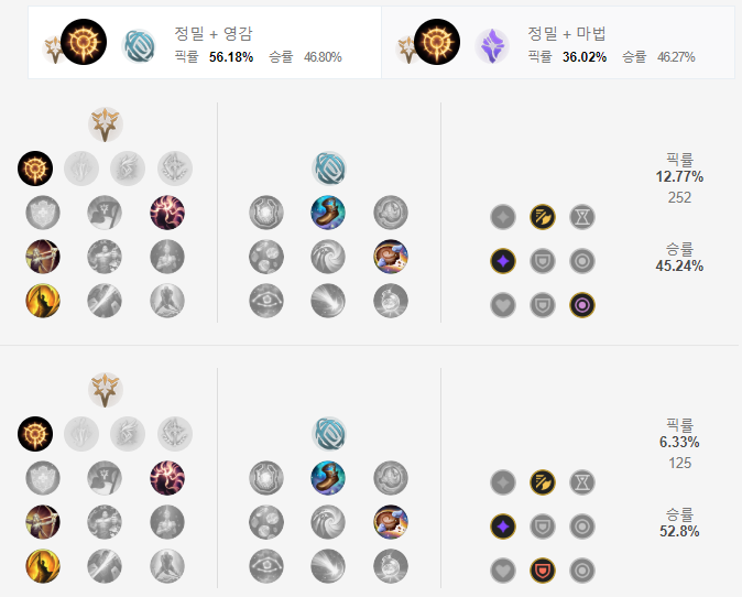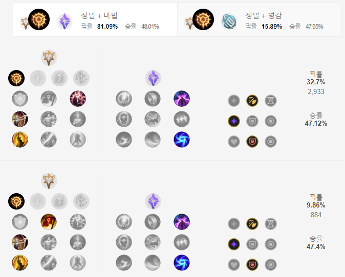 집중 공격 트리는 동일합니다. 원딜시안과 다른점은 보정중에서 영감을 받으며 라인전에서 비스킷을 먹으며 버티는 모습입니다.