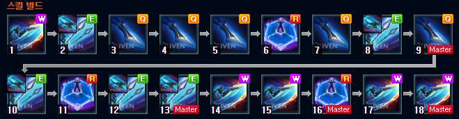 카밀은 Q-E-R-W 순으로 마스터하는 걸 추천합니다 카밀은 기본적으로 Q와 E 스킬을 썬 마스터 합니다. 저는 개인적으로 Q를 선 마스터하여 더 높은 딜을 하는 것을 추천합니다. 그러나 상대의 견제가 심하거나 아군의 정글이 갱을 좋아할 때는 E 스킬을 먼저 마스터하여 호응을 받는 것을 추천합니다. 그 외 Q스킬을 마스터하여 압도적으로 높은 딜교가 가능하오니 참고바랍니다. 개인적으로 W를 마스터 하시는 것을 추천합니다.