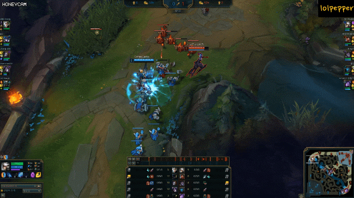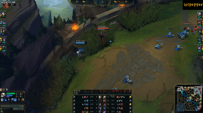 잭스는 정통 카운터죠 카밀의 데미지가 가장 많이 들어오는 타이밍이 기본 공격-Q-기본 공격이 타이밍인데, E에서 스턴을 맥박 치고 찢지 않는 한, 이것이 막혀 E에서 먼저 들어간다는 것은 잭스에게 딜의 교손 혹은 킬까지 넘겨줄 수 있는 위험한 도박입니다. 카밀의 장점인 사이드 주도권도 잭스가 잡기 때문에 다양한 극 카운터입니다.