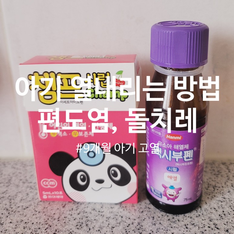 해열제의 교차 복용열이 38.5도 이상으로 올라가자 해열제를 먹였어요.해열제는 맥시 부펜을 먹이면 수민이 열이 쉽게 내리기 때문에 맥시 부펜을 주로 먹였습니다.그래도 고열이 났을 때 해열제 교차 복용을 했어요.나중에 교차 복용을 해도 38도 후반에서 떨어지지 않아서 4일 경에는 해열제를 많이 먹이지 않았습니다.미지근한 물로 몸을 닦아주고 열제를 먹여도 열이 내리지 않기 때문에 수남매의 마음도 초조합니다.그래서 39도에서 수민이가 좀 힘들어하면 미지근한 물로 몸을 닦아줬는데 그러면 0.4~5도 정도 떨어지는 효과가 있어서 해줬어요.